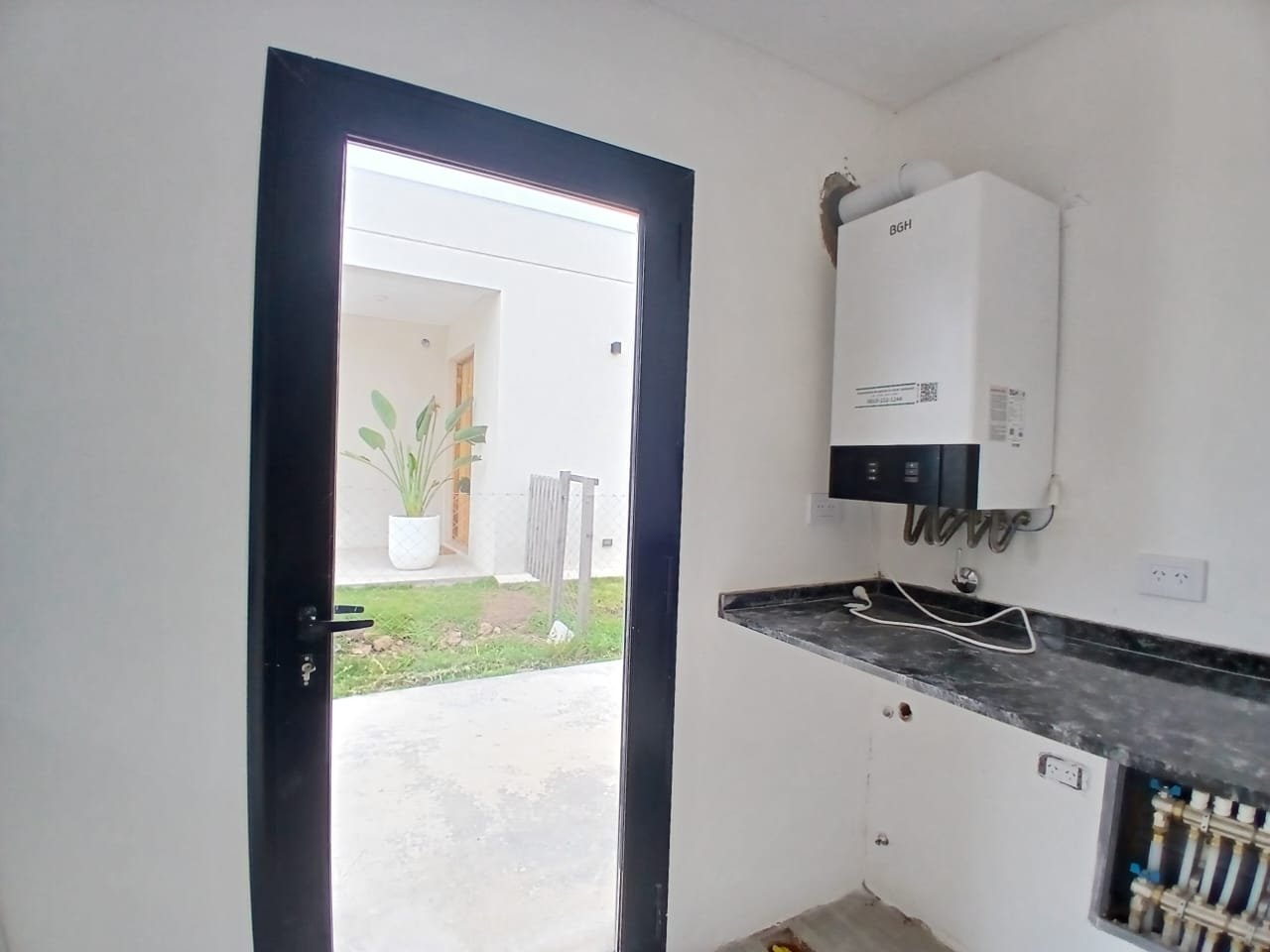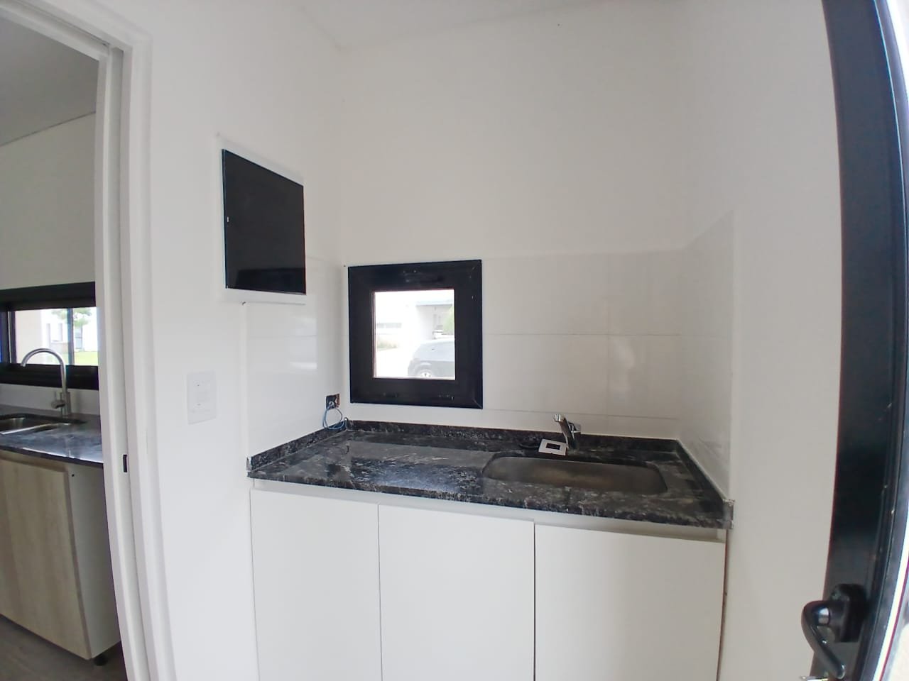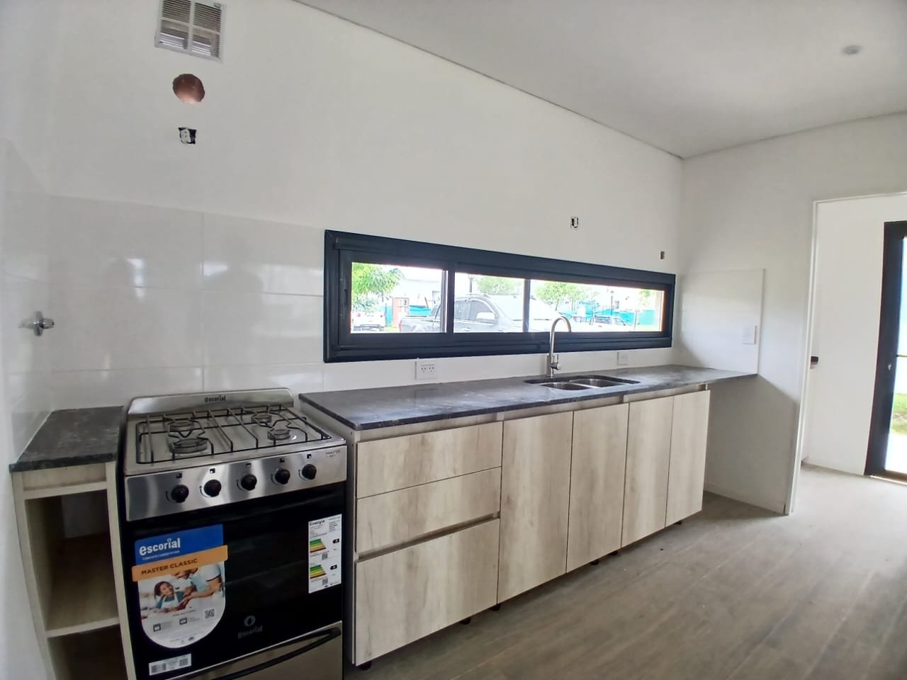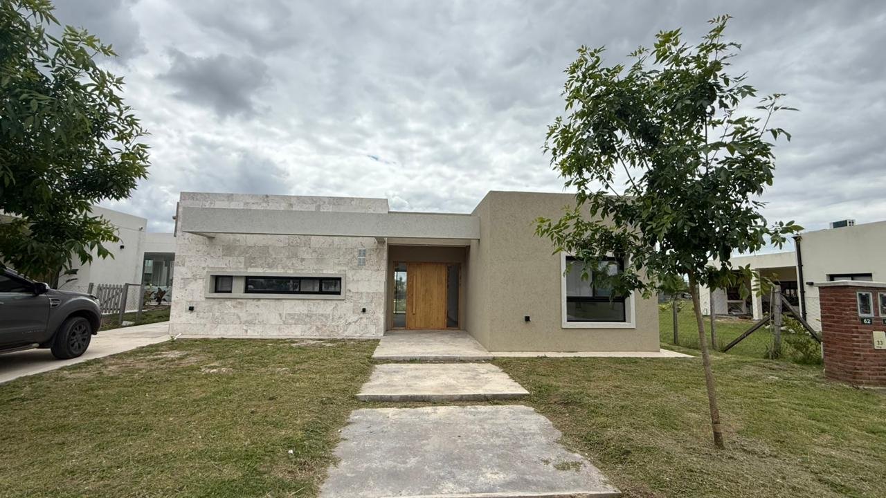 VENTA DE CASA EN SANTA LUCIA, PILAR DEL ESTE. Se trata de una propiedad con amplio living comedor con salida a la galería. Cuenta con una cocina funcional con barra desayunadora integrada, lavadero independiente y toilette de recepción, tres dormitorios, el principal en suite y con vestidor, los otros dos dormitorios con baño compartido. Galería semicubierta con parrilla Pérgola metálica descubierta Jardín. Espacio guardacoche Materiales y detalles constructivos: Revestimiento plástico exterior Carpinterías de aluminio con DVH Losa de viguetas y bloques EPS Tanque cisterna de 2.000 L Pisos cerámicos.