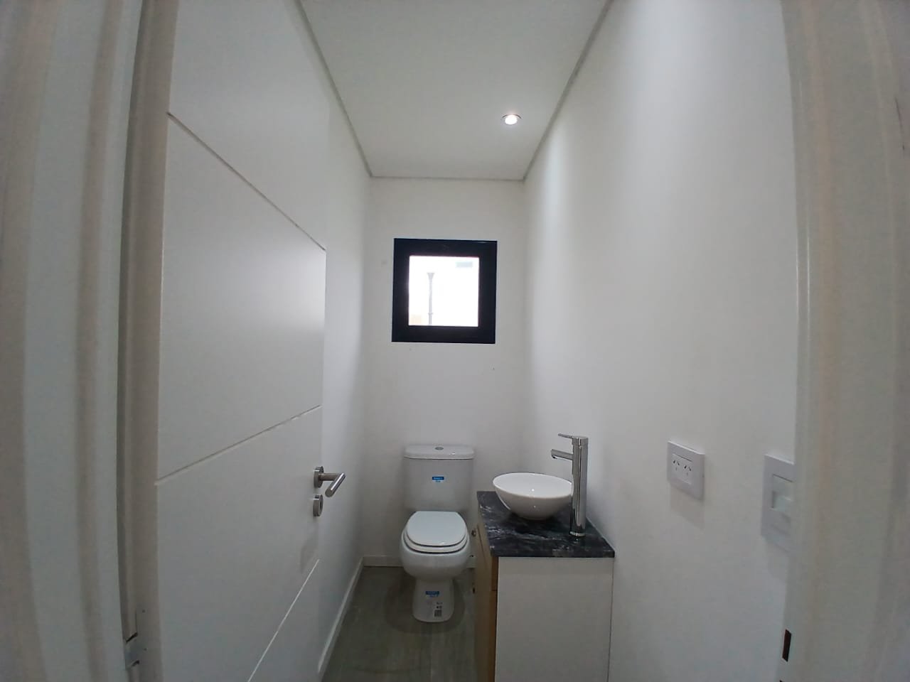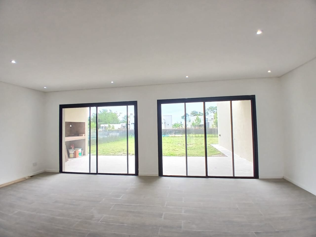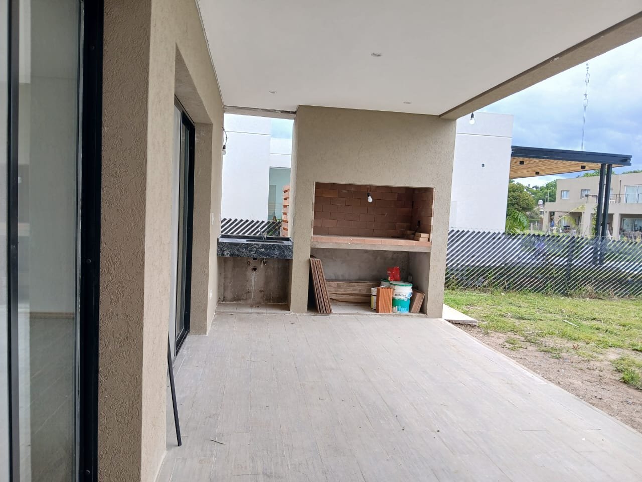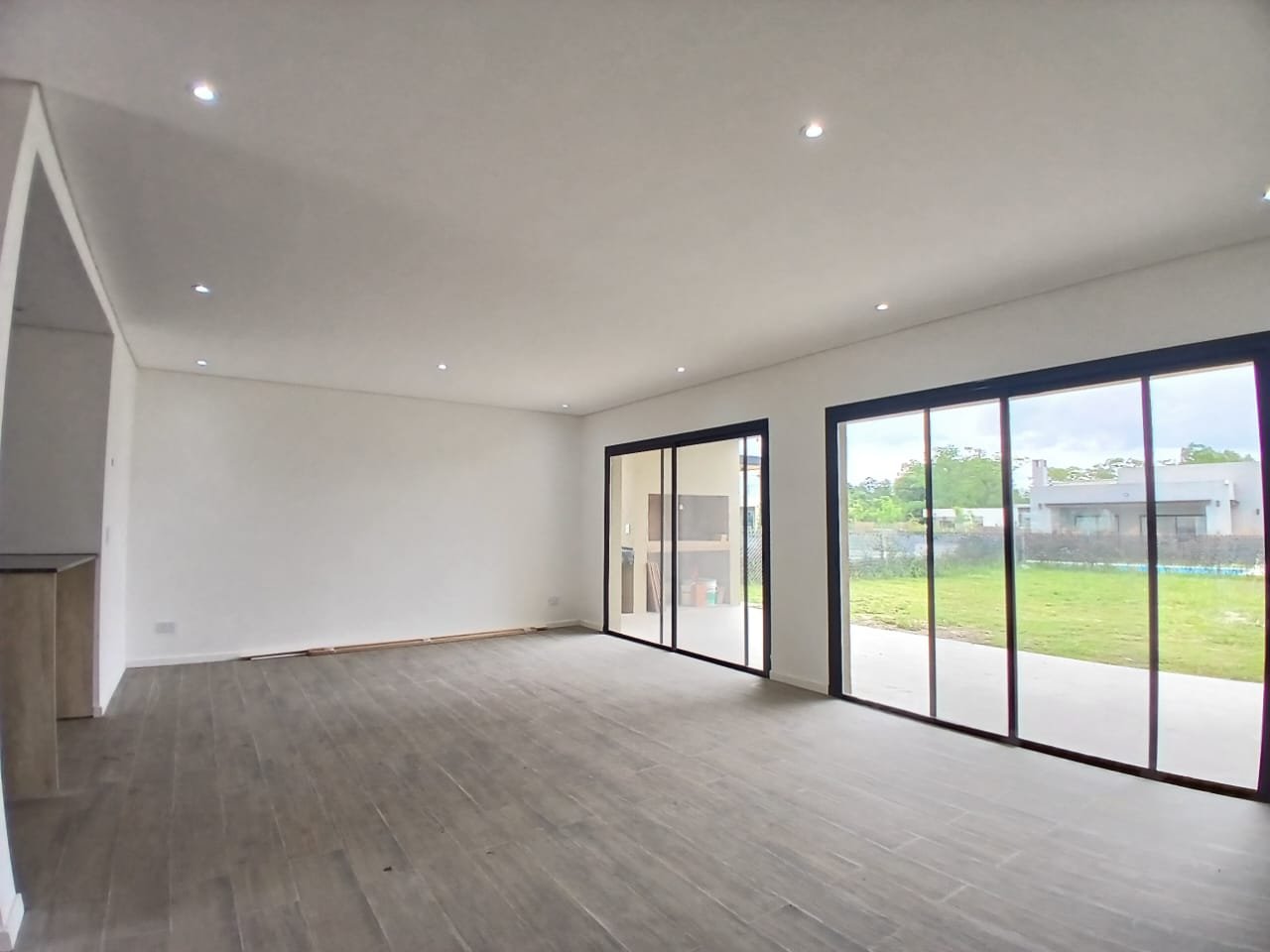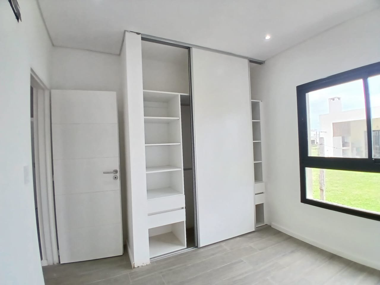 VENTA DE CASA EN SANTA LUCIA, PILAR DEL ESTE. Se trata de una propiedad con amplio living comedor con salida a la galería. Cuenta con una cocina funcional con barra desayunadora integrada, lavadero independiente y toilette de recepción, tres dormitorios, el principal en suite y con vestidor, los otros dos dormitorios con baño compartido. Galería semicubierta con parrilla Pérgola metálica descubierta Jardín. Espacio guardacoche Materiales y detalles constructivos: Revestimiento plástico exterior Carpinterías de aluminio con DVH Losa de viguetas y bloques EPS Tanque cisterna de 2.000 L Pisos cerámicos.