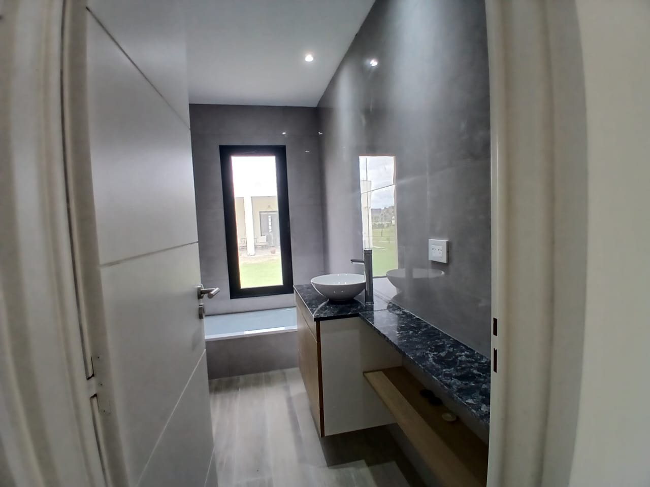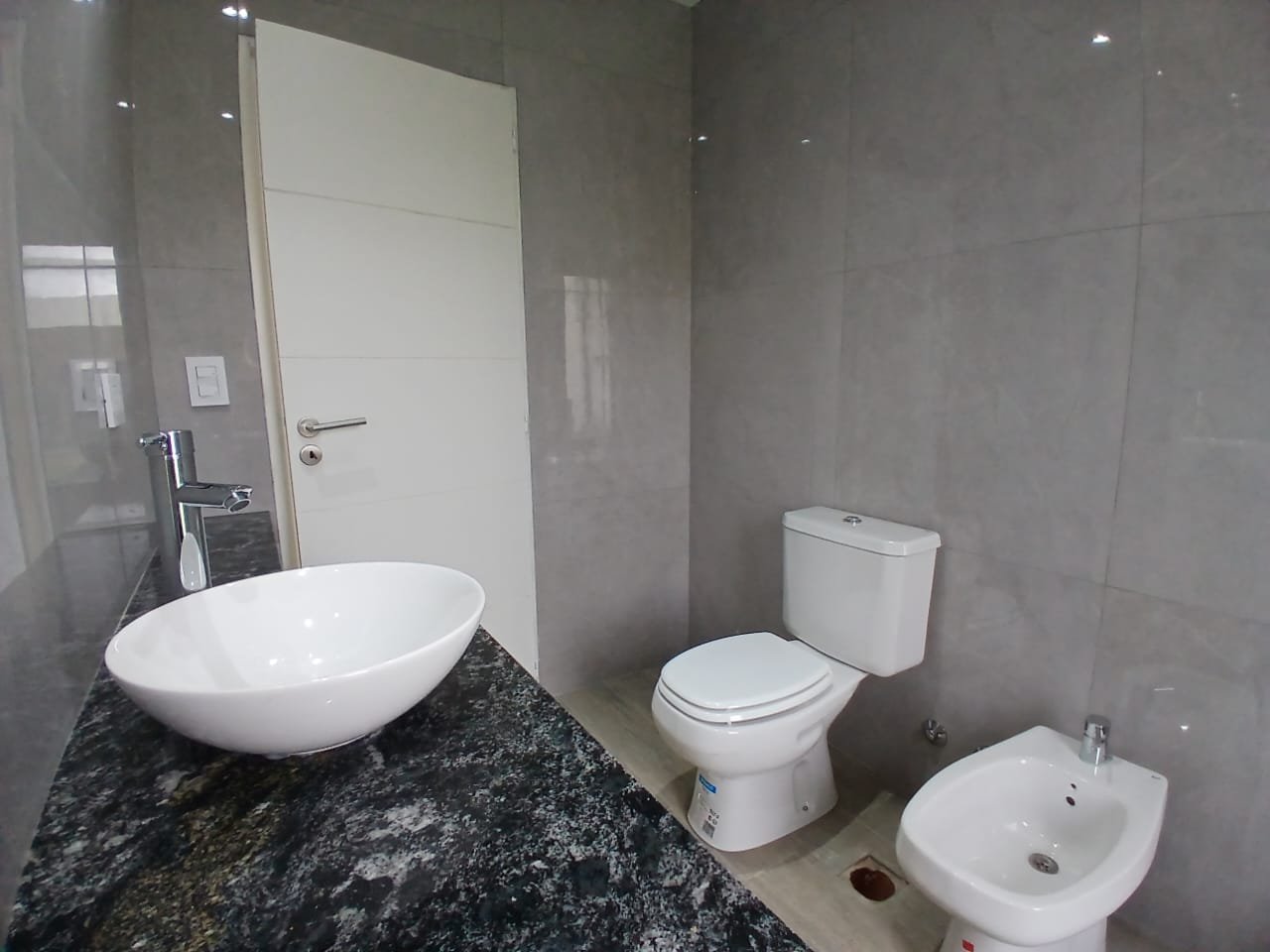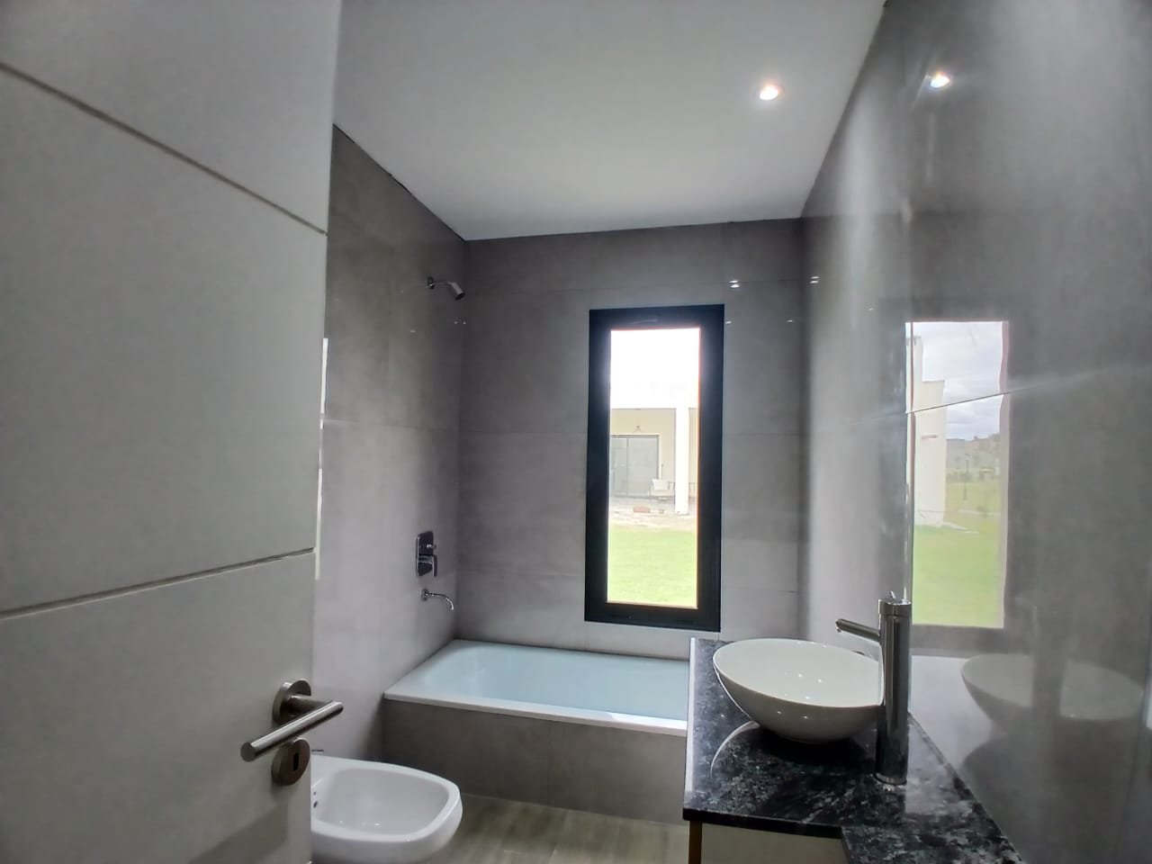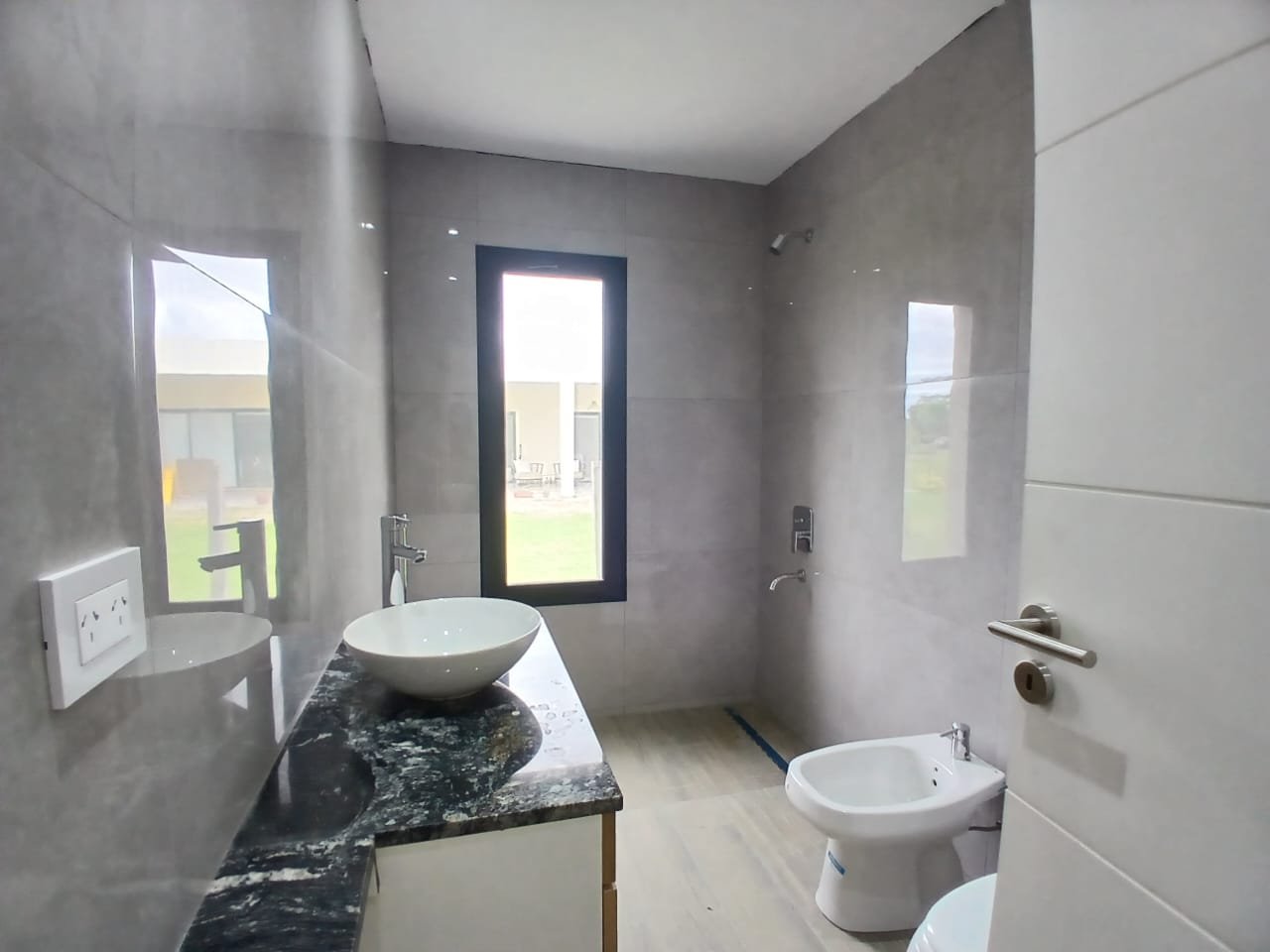 VENTA DE CASA EN SANTA LUCIA, PILAR DEL ESTE. Se trata de una propiedad con amplio living comedor con salida a la galería. Cuenta con una cocina funcional con barra desayunadora integrada, lavadero independiente y toilette de recepción, tres dormitorios, el principal en suite y con vestidor, los otros dos dormitorios con baño compartido. Galería semicubierta con parrilla Pérgola metálica descubierta Jardín. Espacio guardacoche Materiales y detalles constructivos: Revestimiento plástico exterior Carpinterías de aluminio con DVH Losa de viguetas y bloques EPS Tanque cisterna de 2.000 L Pisos cerámicos.
